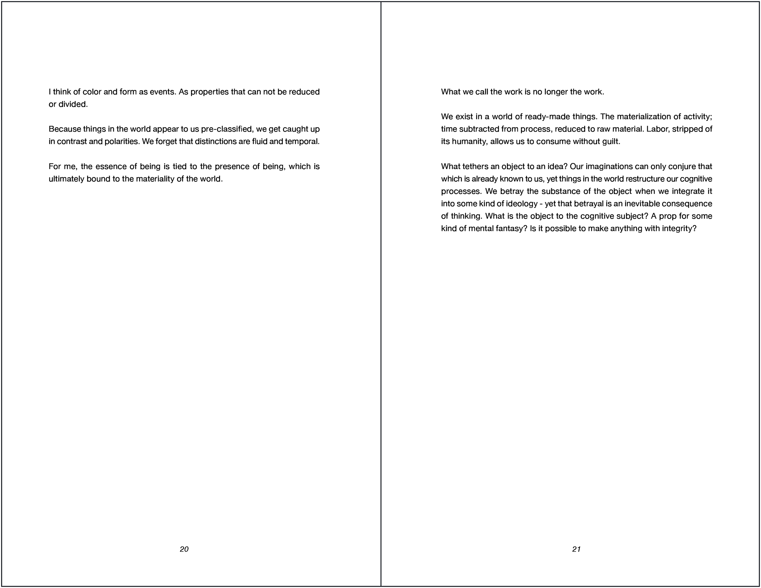 A collection of booklets, interviews, and studio notes that accompanied past exhibitions.